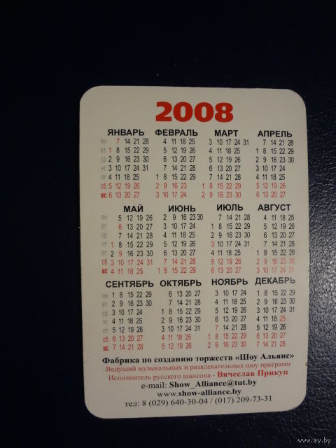 Календарик 2008 г. Фабрика по созданию торжеств Шоу Альянс.