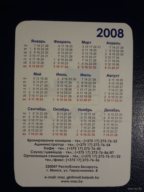 Календарик 2008 г. Гостиничный комплекс Алмаз.