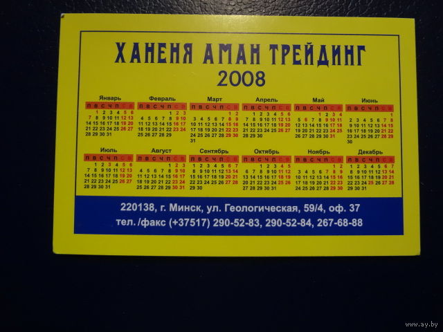 Календарик 2008 г. Ханеня Аман Трейдинг.