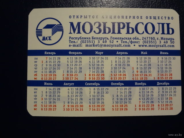 Календарик 2008 г. На вашем столе.. соль экстра Полесье.