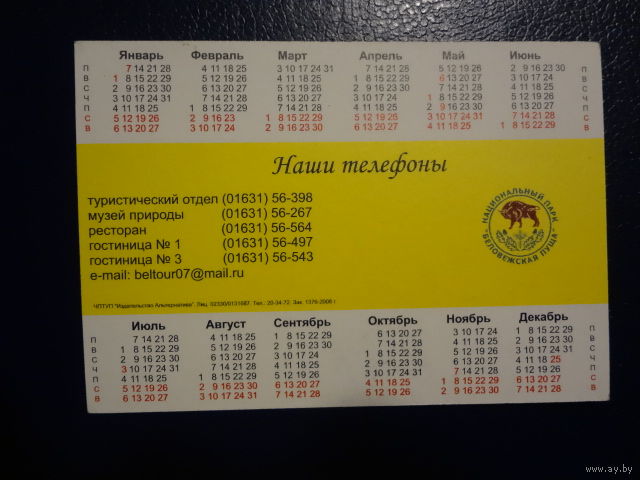 Календарик 2008 г. Национальный парк Беловежская пуща. Гостиница.