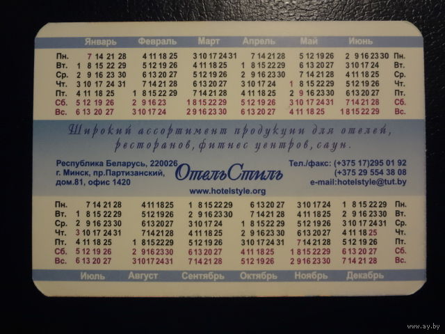 Календарик 2008 г. Отель Стиль.