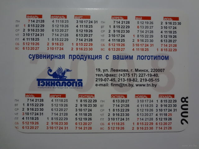 Календарик 2008 г. Тэхналогія.