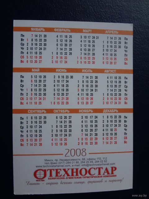 Календарик 2008 г. Техностар. Египет. В тени великих пирамид.