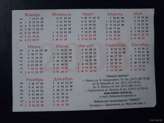 Календарик 2008 г. Тимбер Маркет.