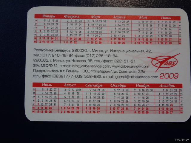 Календарик 2009 г. АэроБелСервис. Девушка, бабочки.
