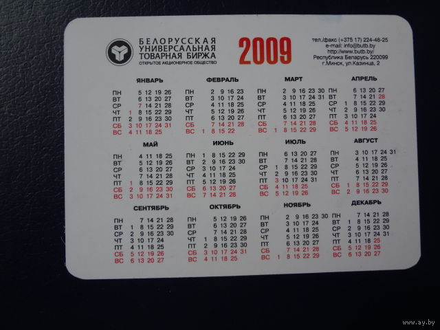 Календарик 2009 г. Белорусская универсальная товарная биржа.