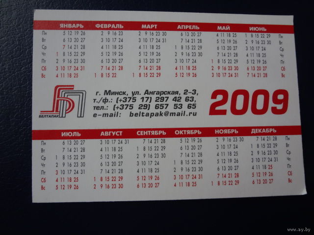Календарик 2009 г. БелтаПак.