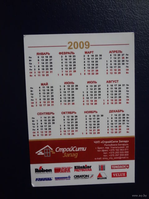 Календарик 2009 г. ЧУП СтройСити Запад.