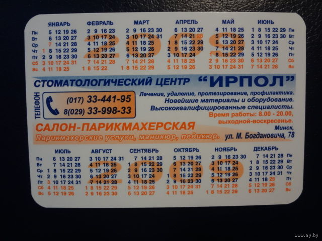 Календарик 2009 г. Ирпол. Стоматологический центр.