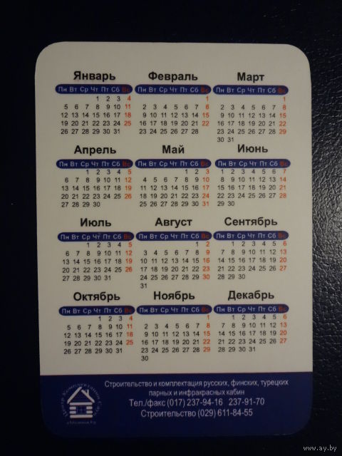 Календарик 2009 г. Комплектация и строительство русских, финских, турецких парных.