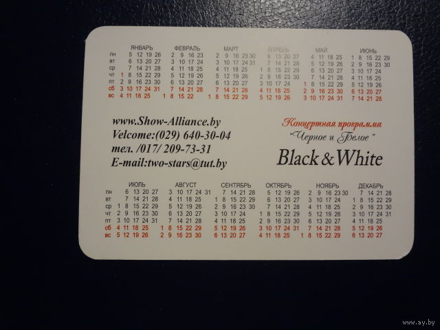 Календарик 2009 г. Концертная программа Черное и Белое.