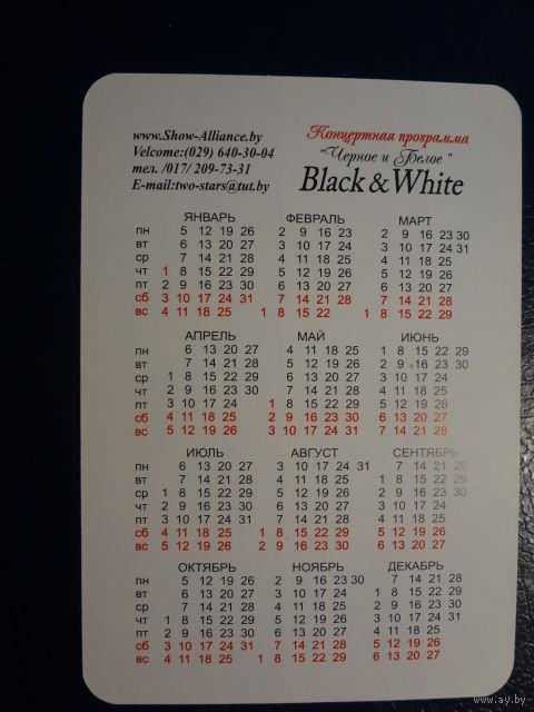 Календарик 2009 г. Концертная программа Черное и Белое.