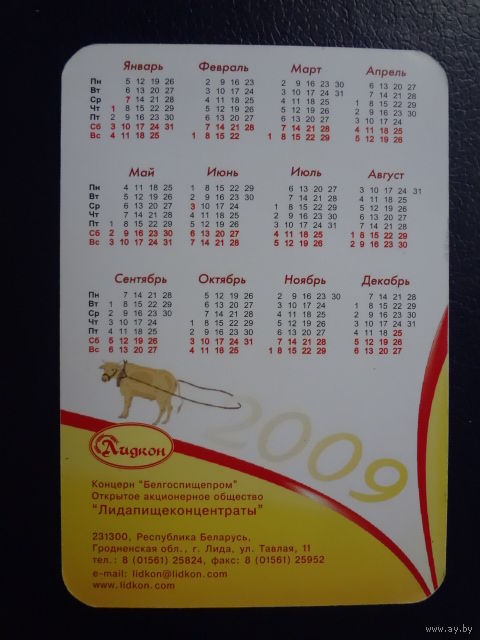 Календарик 2009 г. Лидкон. Время натуральных продуктов. (Лида).