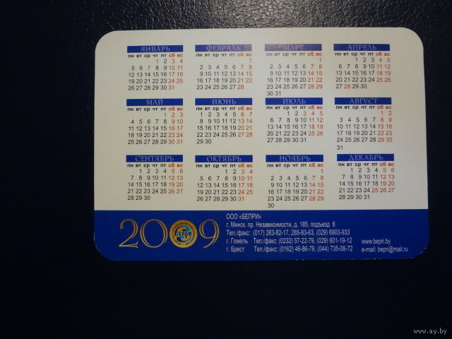 Календарик 2009 г.. Минск.