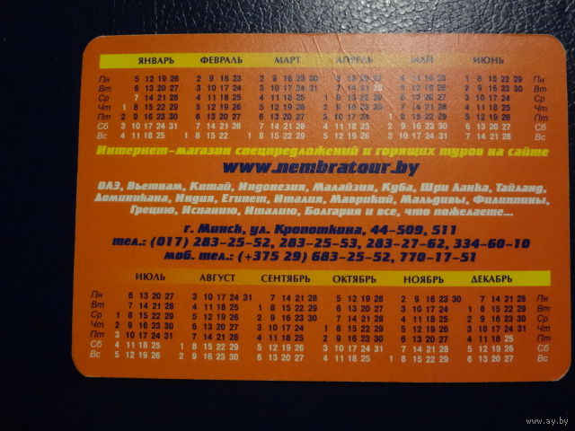 Календарик 2009 г. Нембратур.