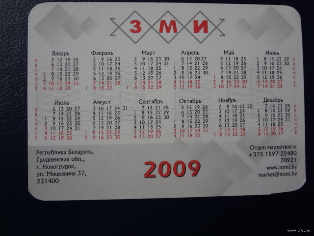 Календарик 2009 г. Новогрудский Завод Металлоизделий.