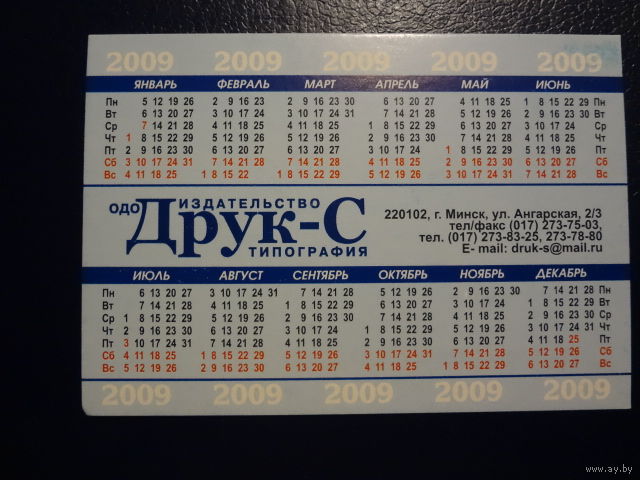 Календарик 2009 г. ОДО Друк-С. Аисты.