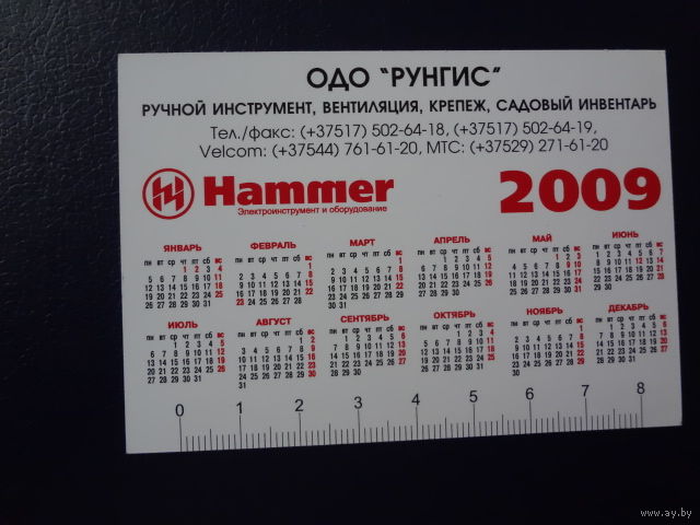 Календарик 2009 г. Ручной инструмент, вентиляция, крепеж, садовый инвентарь.