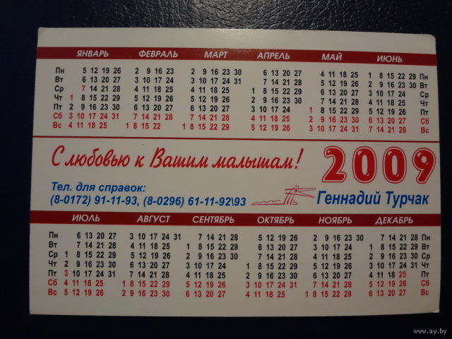 Календарик 2009 г. Счастья и благополучия в жизни! Вместе с книгами Геннадия Турчака!