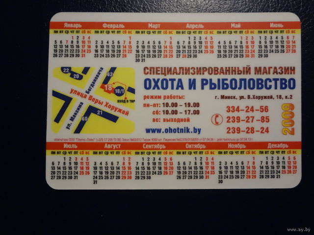 Календарик 2009 г. Специализированный магазин Охота и рыболовство.