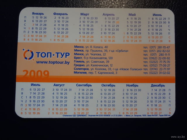 Календарик 2009 г. Топ-тур. Достопримечательности.