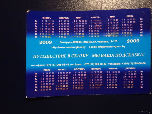 Календарик 2009 г. Тур компания Мастер ВГ тур.