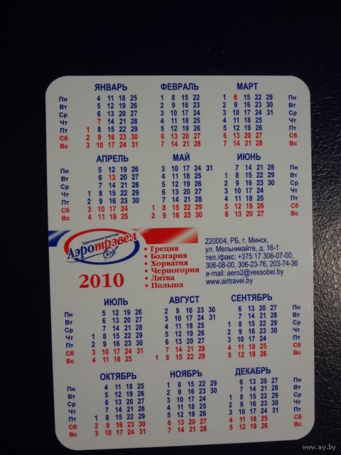Календарик 2010 г. Аэротрэвел. Тур. агентство.