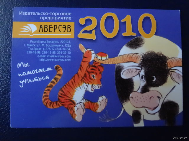 Календарик 2010 г. Аверсэв. Бык, тигренок.