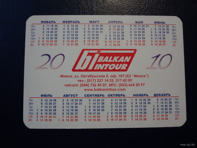 Календарик 2010 г. Балкантур. Приближай свой отдых!