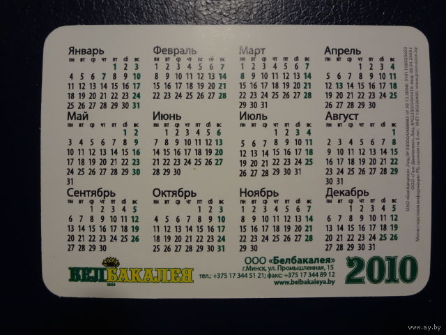 Календарик 2010 г. Белбакалея. А знаете ли вы...