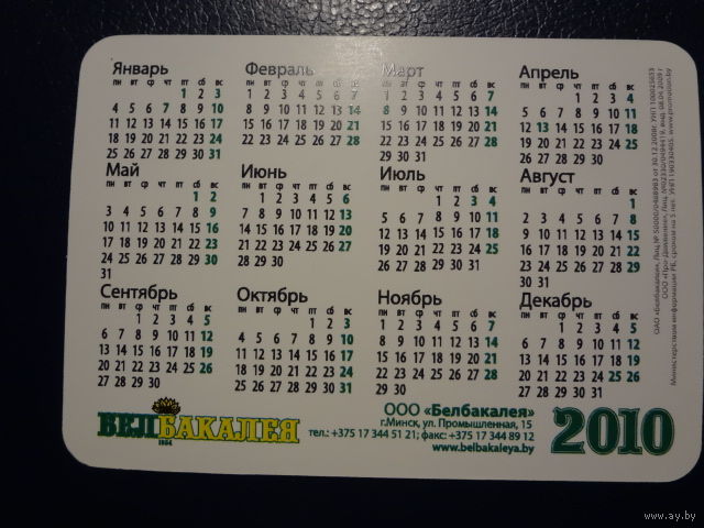 Календарик 2010 г. Белбакалея - гид по миру гастрономии.