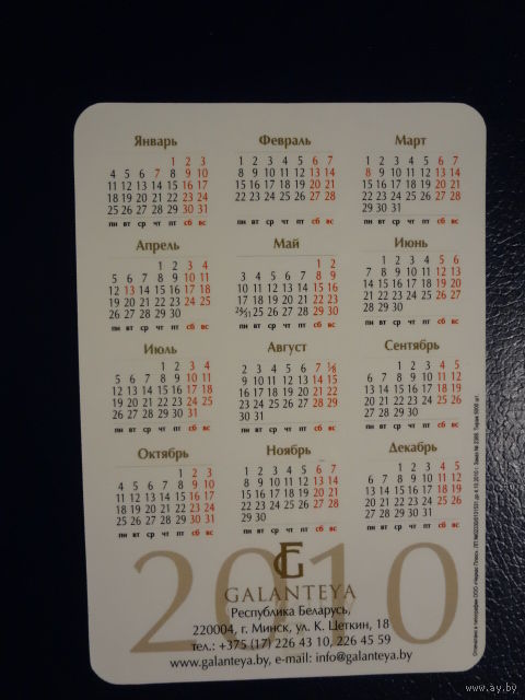Календарик 2010 г. GALANTEYA.