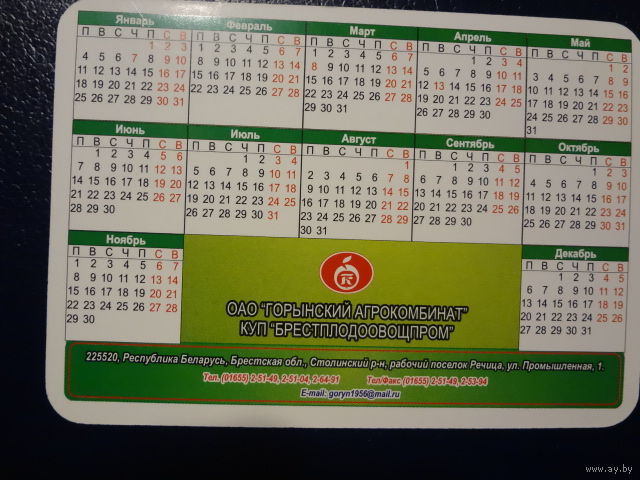 Календарик 2010 г. Горынский агрокомбинат. (Столинский р-он).