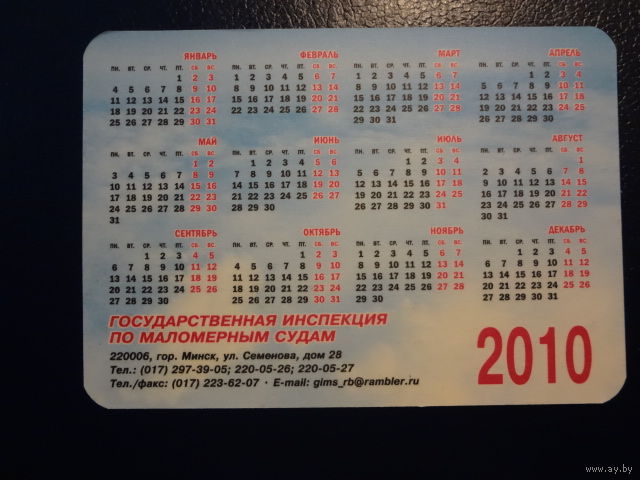 Календарик 2010 г. Гос. инспекция по маломерным судам.