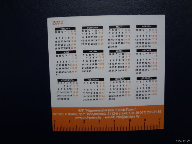 Календарик 2010 г. Издательский Дом Проф-Пресс.