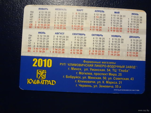 Календарик 2010 г. Климград. Мы открылись!