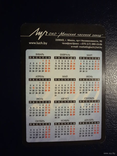 Календарик 2010 г. Луч. ОАО Минский часовой завод.