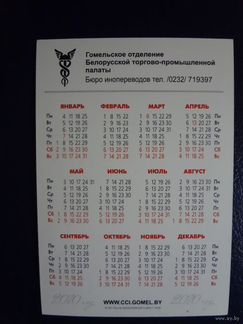 Календарик 2010 г. Переводы. Гомельское отделение БТПП.