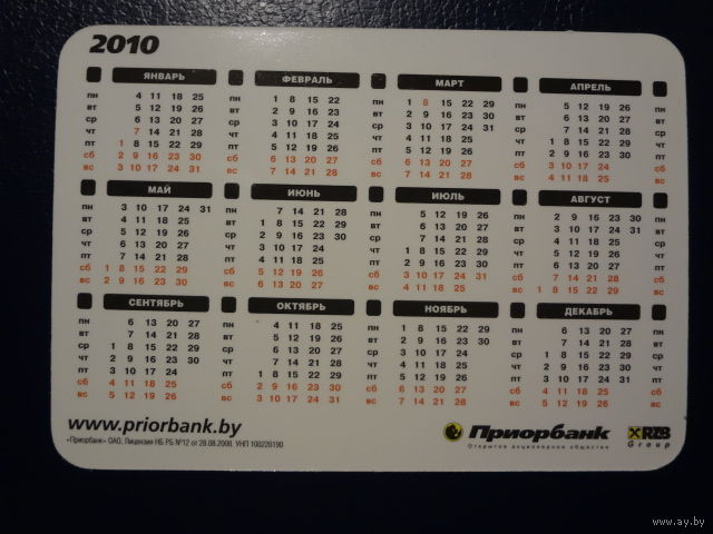 Календарик 2010 г. Приорбанк. Свобода вашего выбора.