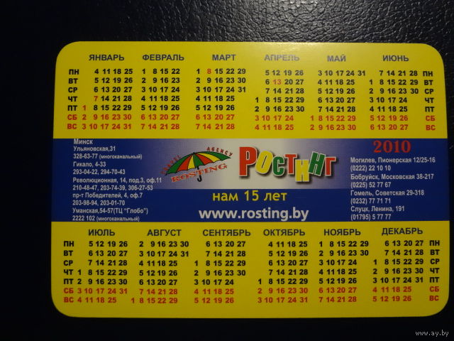 Календарик 2010 г. Ростинг. Нам 15 лет.