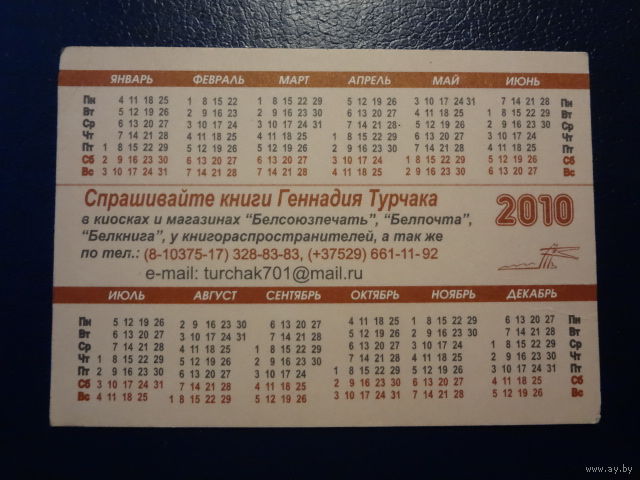 Календарик 2010 г. Счастья и благополучия в жизни! Вместе с книгами Геннадия Турчака!