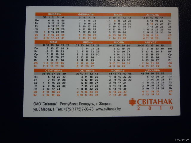 Календарик 2010 г. Світанак. Свобода в движениях.