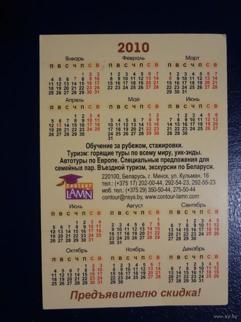 Календарик 2010 г. Тур. компания Контур-ламн.