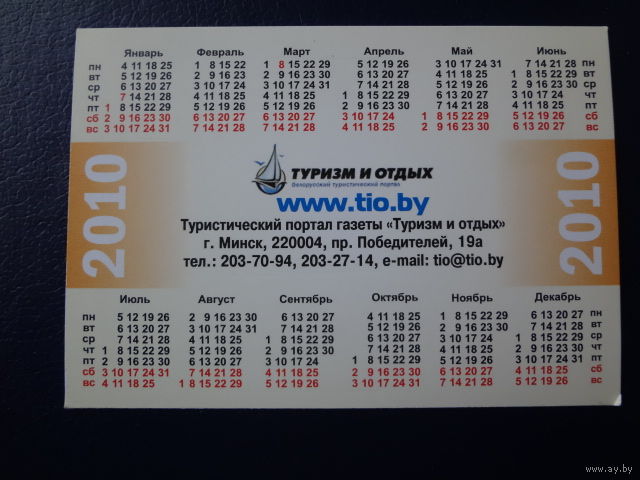 Календарик 2010 г. Туризм и отдых.