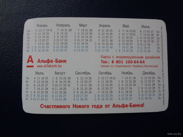 Календарик 2011 г. Alfa-Bank.