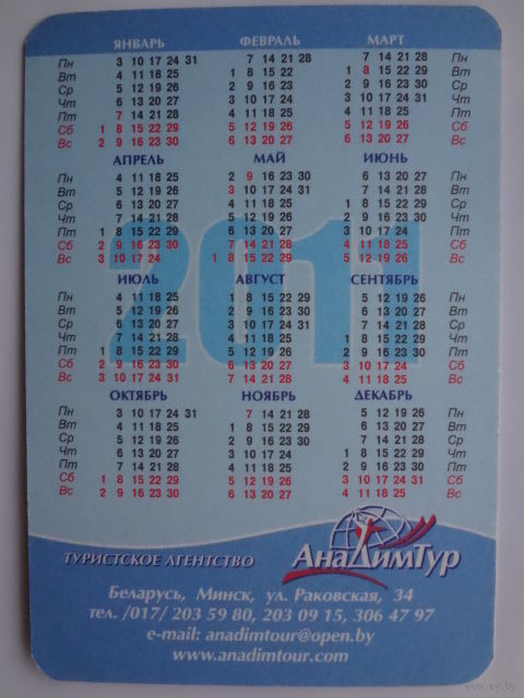 Календарик 2011 г. АнаДимТур. Отдых, где осуществляются мечты!
