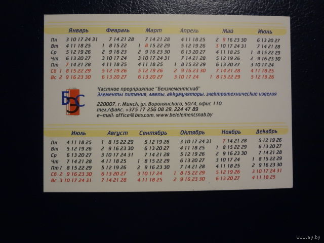 Календарик 2011 г. БелЭлементСнаб.