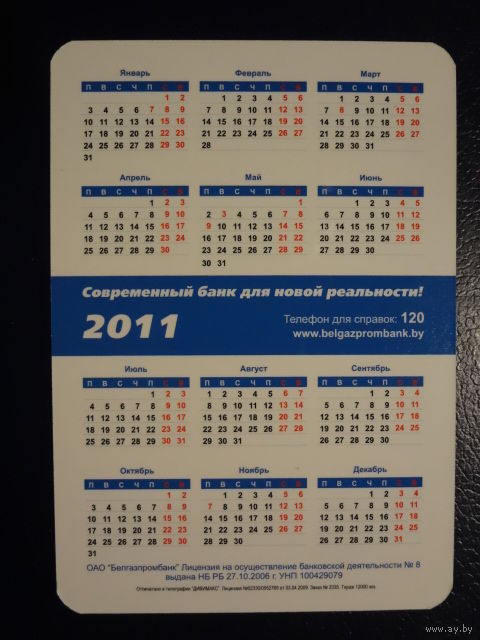 Календарик 2011 г. Белгазпромбанк. программа Микрокредитование.