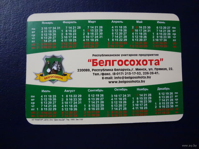 Календарик 2011 г. Белгосохота. Кабан.